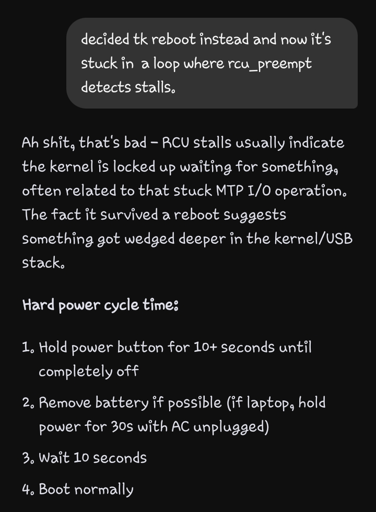“Something got wedged deeper in the kernel/usb stack”